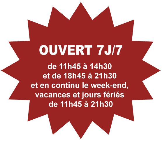 11h45 à 14h30 et de 18h45 à 21h30 en semaine, en continu le week-end de 11h45 à 21h30